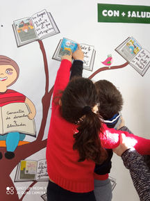 Este mural, diseñado con la ayuda de Blanca (alumna de 6º A) ya luce en la entrada de nuestro centro. De las ramas del árbol nacen los 17 libros que trabajaremos desde las tutorías (Infantil, Primaria y Aula Específica) y sobre los que, durante las próximas semanas, elaboraremos los vídeo-cuentos (en formato digital y en papel, para que puedan estar al alcance del alumnado en nuestra biblioteca escolar).