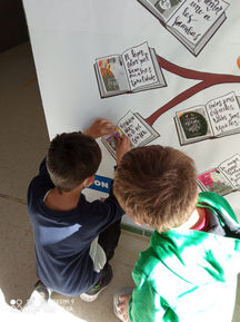 Durante el desarrollo de las diferentes áreas se han elaborado composiciones escritas (poemas, biografías, cuentos...), y manualidades con materiales muy diversos. No han faltado las exposiciones orales tras trabajos de investigación ni las presentaciones digitales. También, fiel a nuestras tradiciones, nuestro alumnado ha cantado, bailado y ha disfrutado, en el patio, con los juegos populares. Traducciones en inglés, audio-cuentos, pequeños libros donde han mostrado y expuesto todo el trabajo realizado, actividades vivenciadas... y un buen número de experiencias lúdicas, participativas y muy significativas.