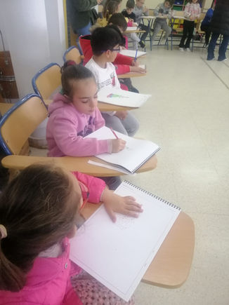 Tras someterse a un buen número de preguntas preparadas por nuestro alumnado de primaria, hemos disfrutado de un taller práctico, dirigido por su hija Fátima. Durante el mismo, nuestros niños y niñas han dibujado su primer boceto de traje de flamenca.