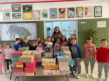 Con gran ilusión, nuestro alumnado ha ido preparando cajas repletas de materiales escolares, productos de higiene personal y pequeños juguetes, que irán destinados a orfanatos, colegios y guarderías de países de África.