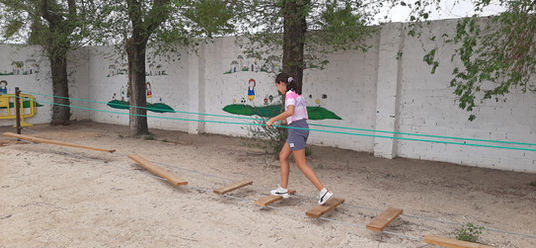 Continuamos en la línea de la mejora de los espacios exteriores, en esta ocasión, instalando un puente tibetano en la zona de tierra de nuestro patio. De esta forma, nuestro alumnado podrá disfrutar de una estructura destinada a la mejora del equilibrio, la coordinación, la percepción espacial… de una forma lúdica y muy divertida.